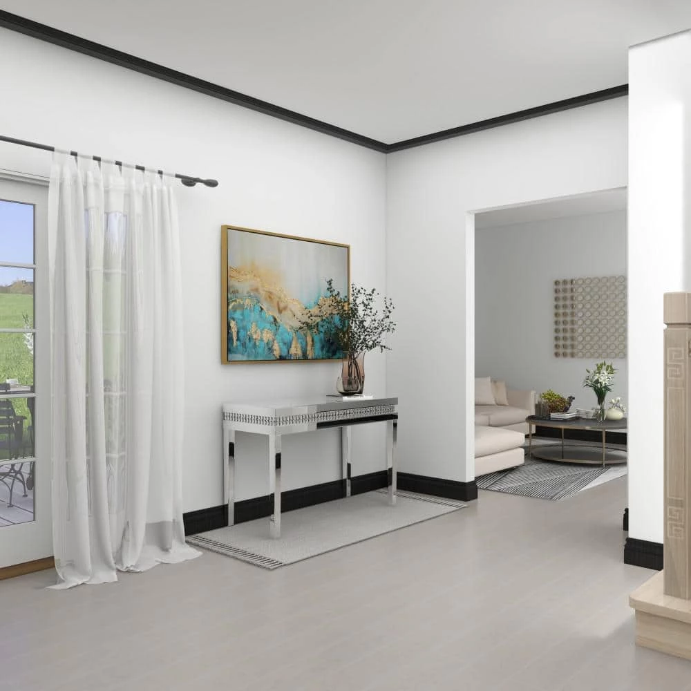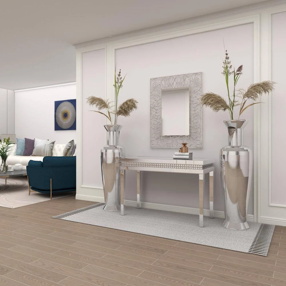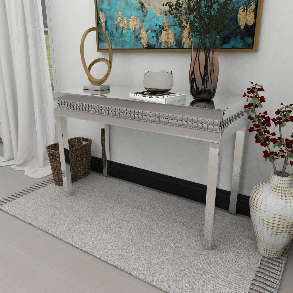 - This glam-inspired console table comes in a sophisticated silver finish that suits any glam-inspired interior design