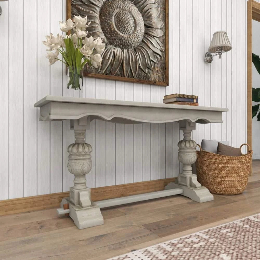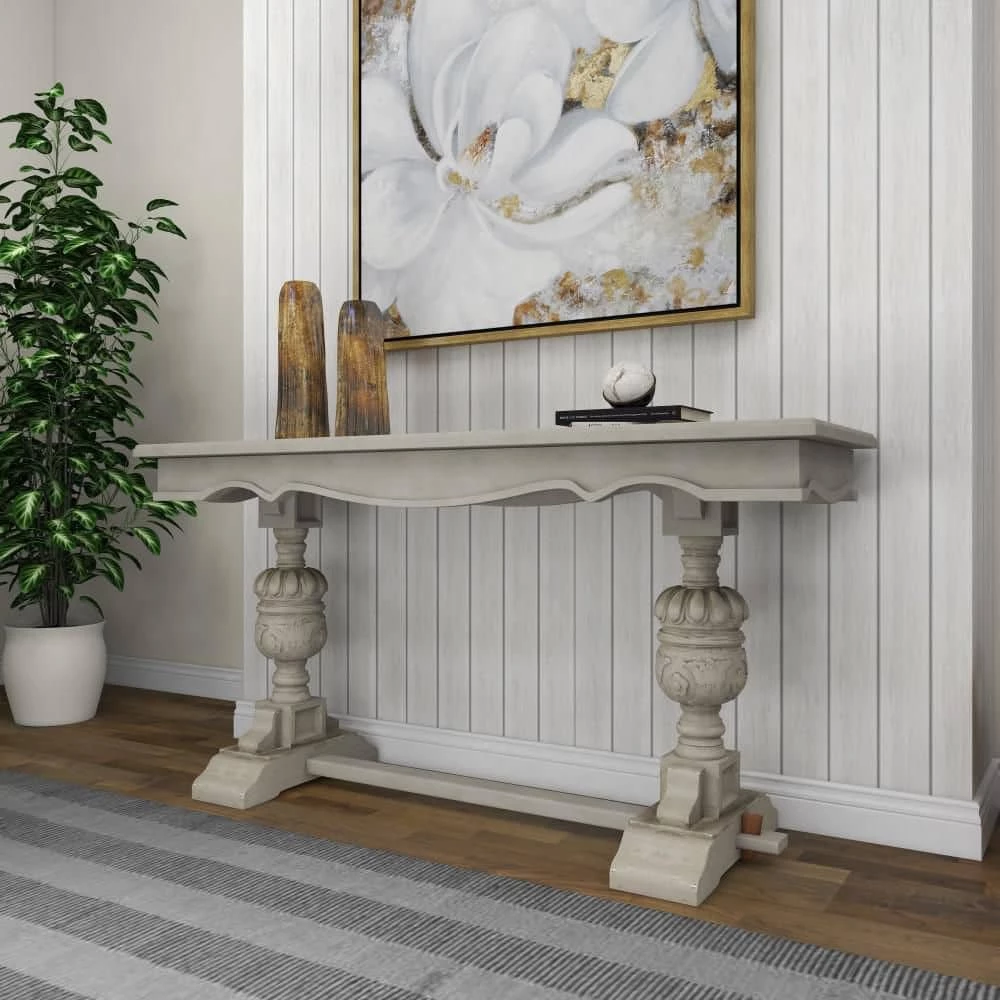- Long console table gives you the stylish look of an antique design with the reinforcement of solid wood and warp-proof fiberglass construction
