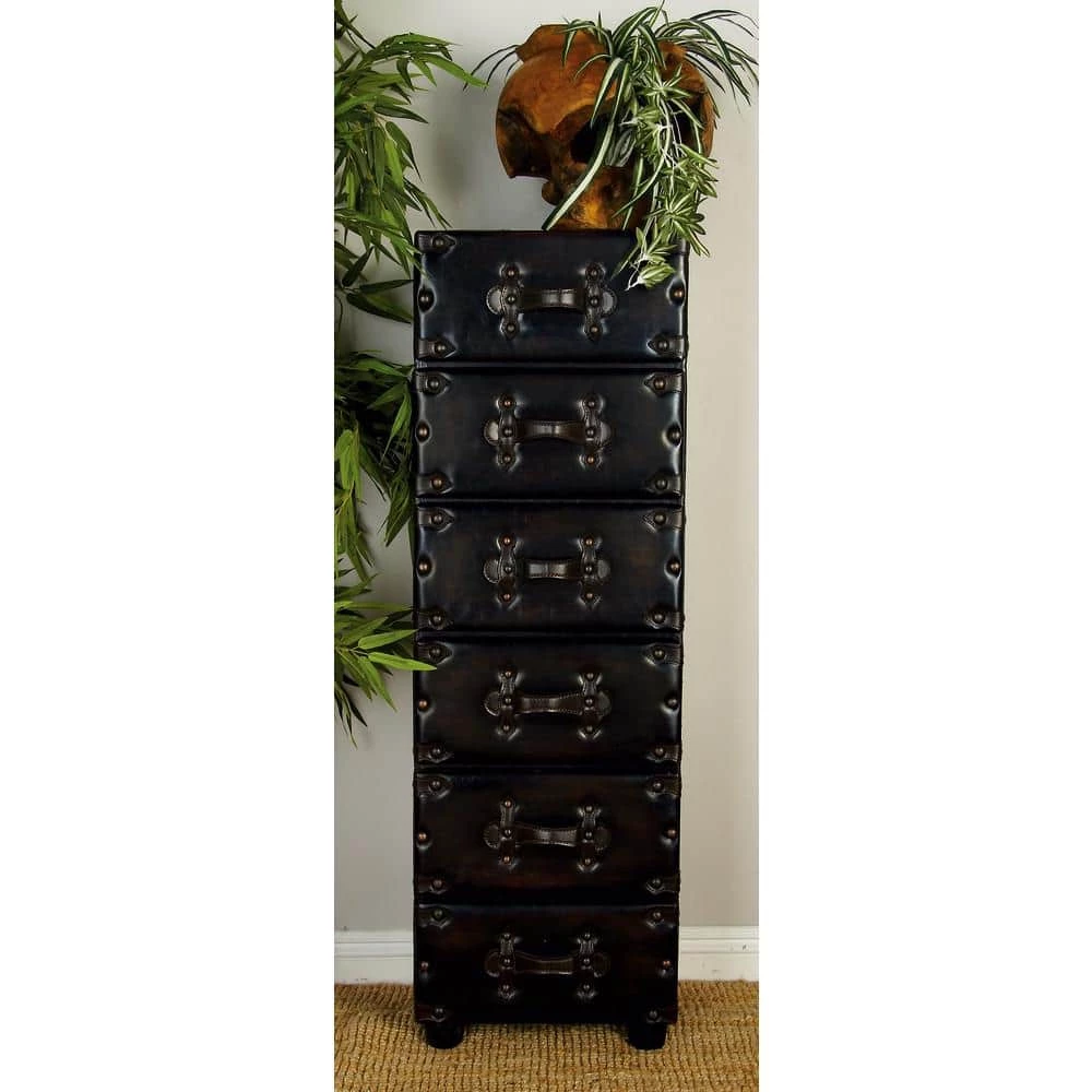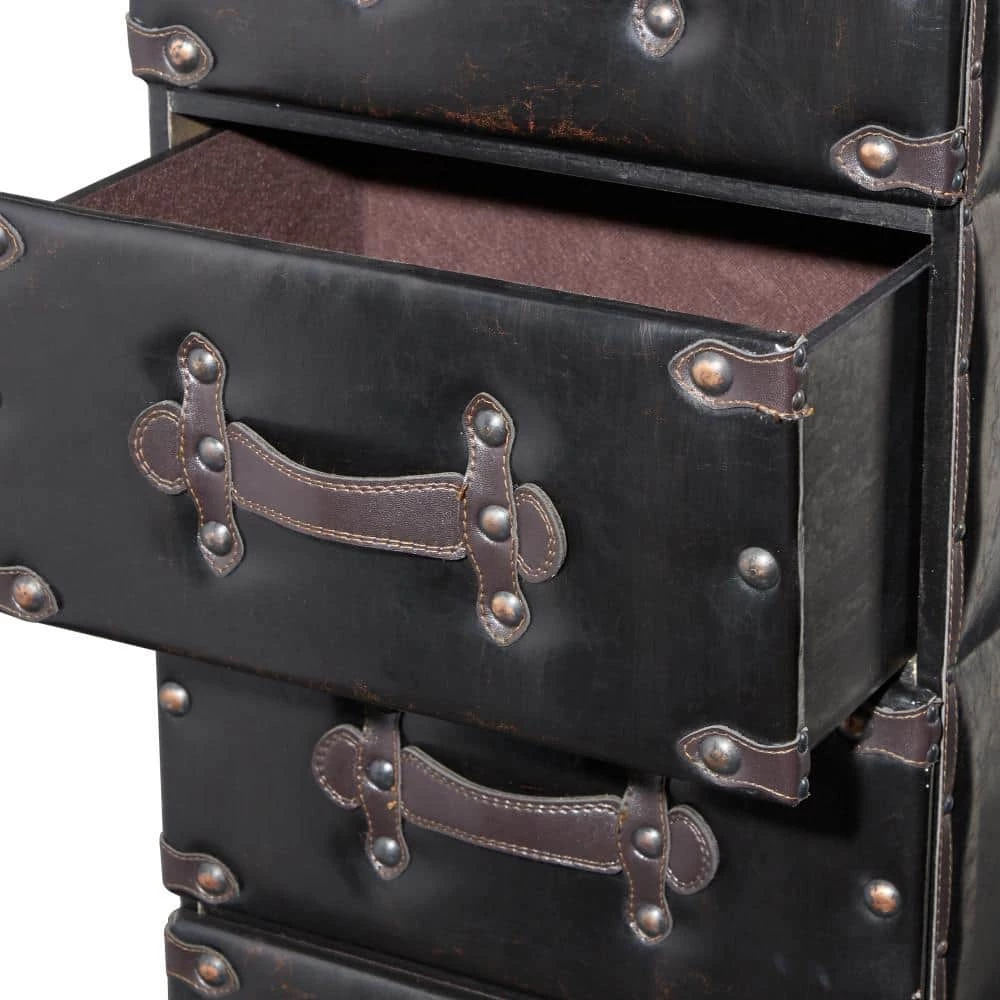 - Black and brown soft sheen textured finish highlights this chest drawer