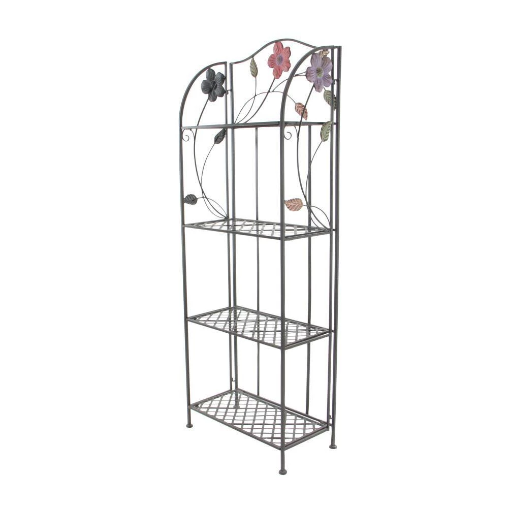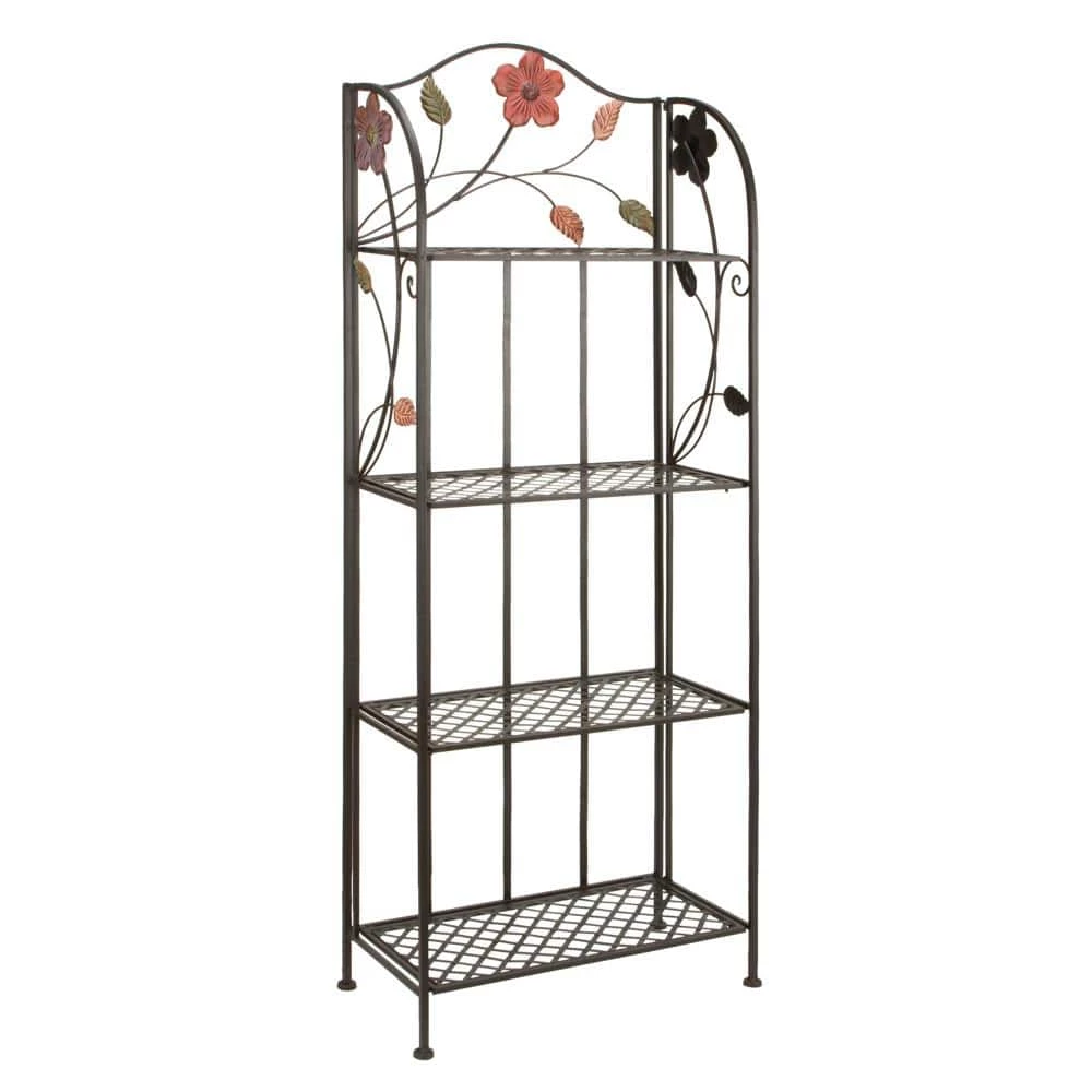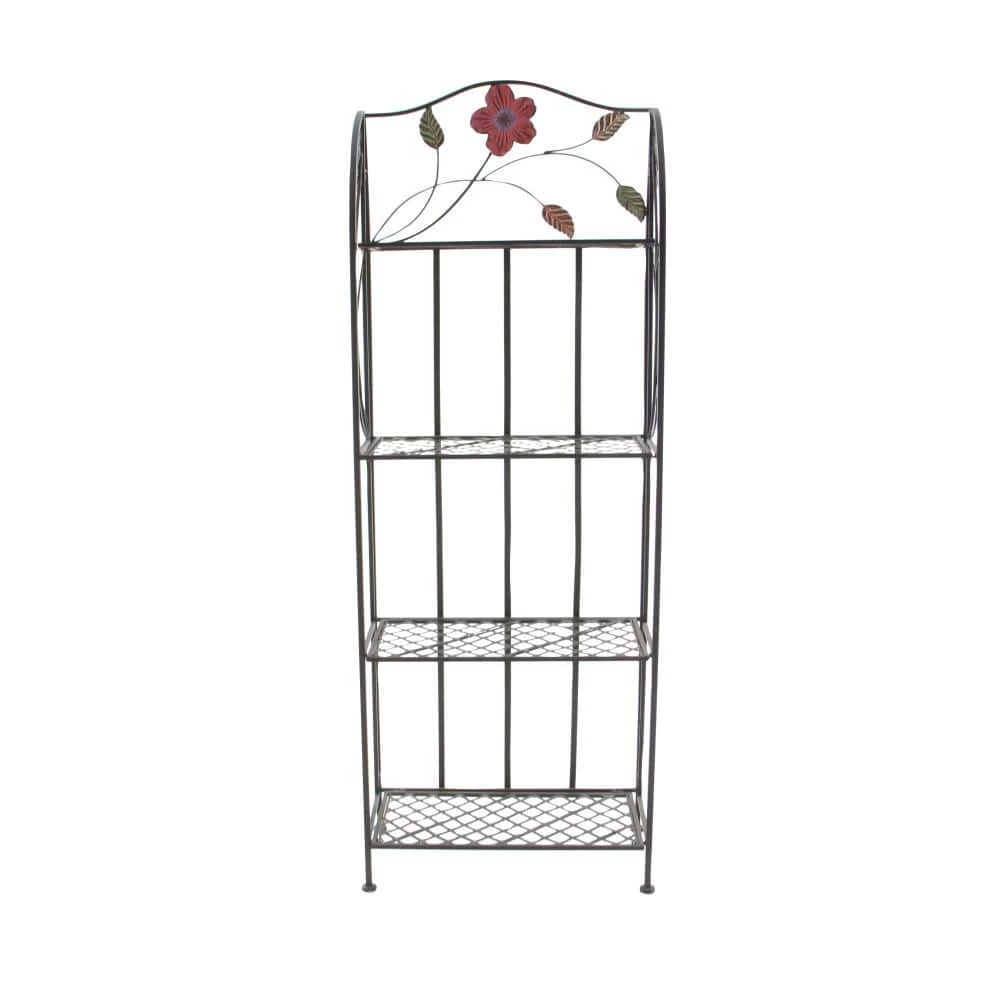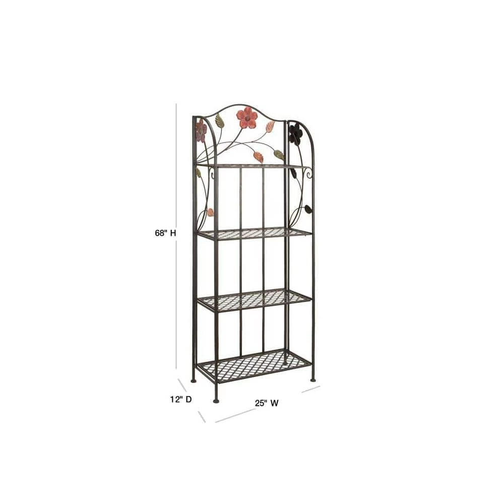 A storage piece that is spacious to keep your valuable organized and safe. Appreciate their design best against solid-colored backgrounds. Display this traditional shelving rack inside or out and filled with bright-colored potted cacti and flowers. Designed with stoppers at the base that prevent scratching as well as sliding around. This item ships in 1 carton. Large, decorative metal indoor and outdoor storage unit with 4 rack shelves. A great versatile decor for indoor or outdoor display but are not rust or weather resistant. Each shelf can hold up to 30 lbs. Metal storage unit that comes with 4 rectangular shelves measuring 23″ width, 16″ height, and 13″ depth. Traditional style.