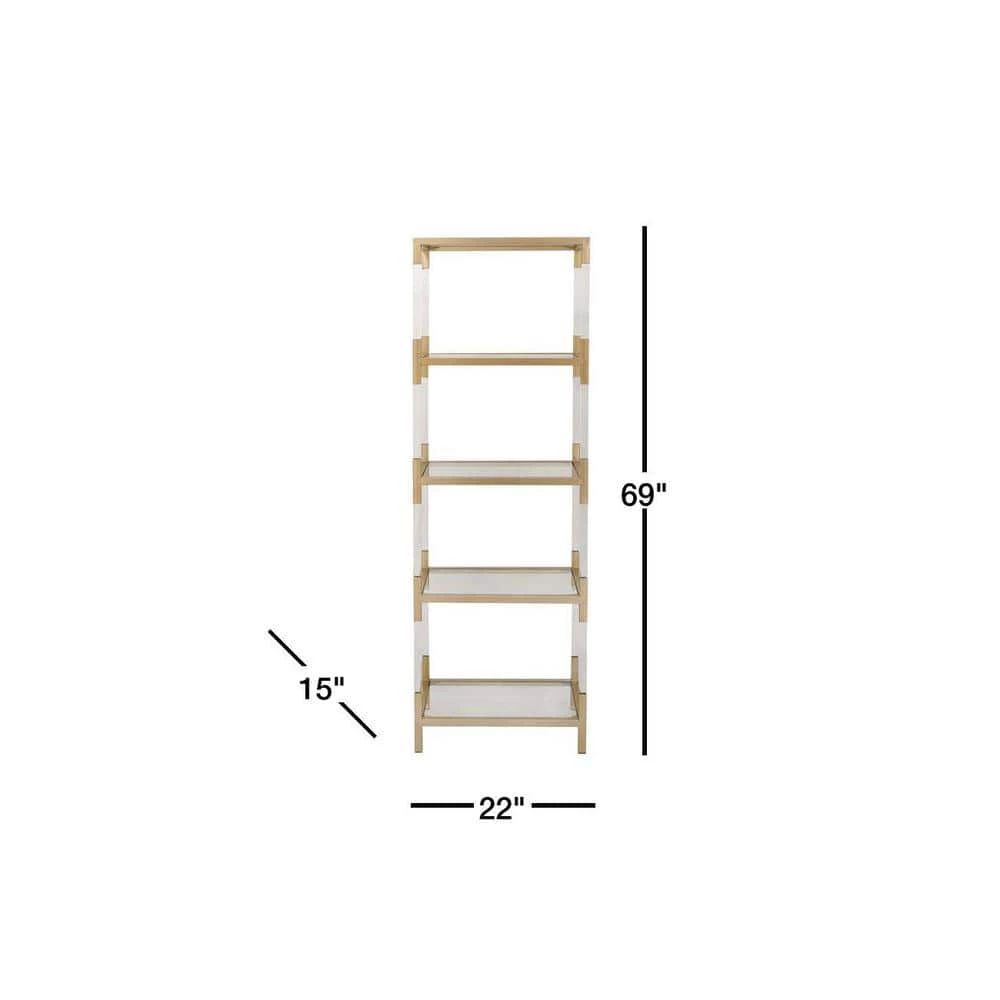 Place these modern shelving unit next to your upholstered sofa and decorate it with books and potted plants for a luxe upgrade. This item ships in 1 carton. Suitable for indoor use only. Maximum weight limit for shelf is 30 lbs.. 5-tier shelf. Contemporary style.