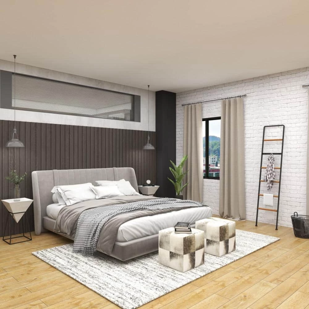 - A contemporary style offers neutral elements and basic forms with a bold design