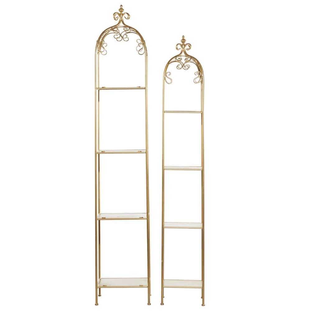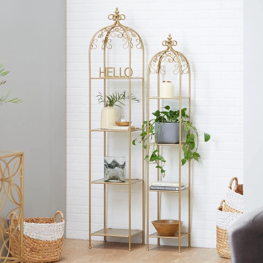 - This birdcage-inspired storage rack set with finials and iron scrollwork is made of sturdy iron