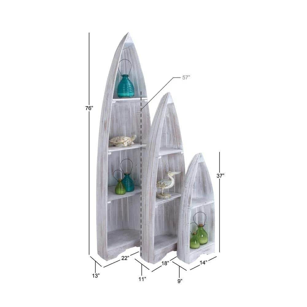 - This shelf set features a unique boat design with shelf count ranging from 2 to 4 for all your storage or decor needs