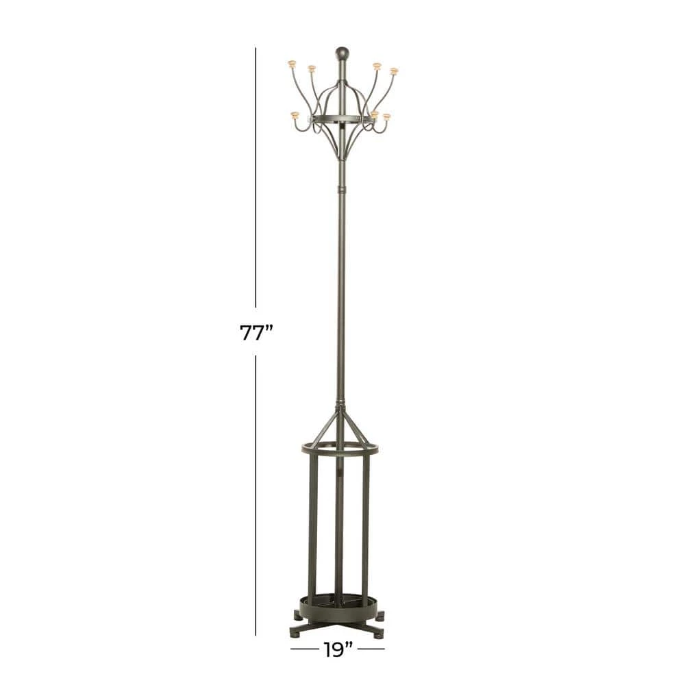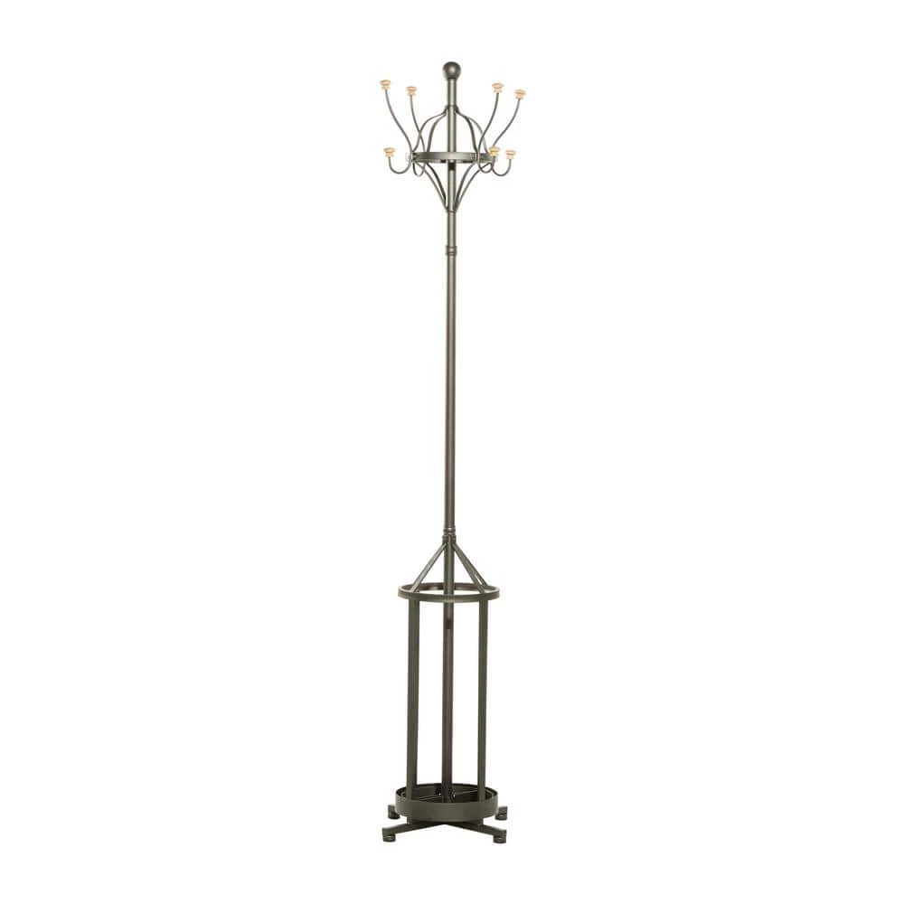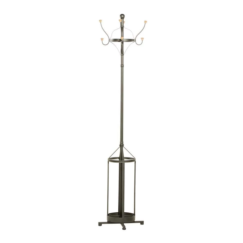 - Featuring a finial and curved metal hangers with wooden tips, this rack can support your coats, small bags, caps, and umbrellas
