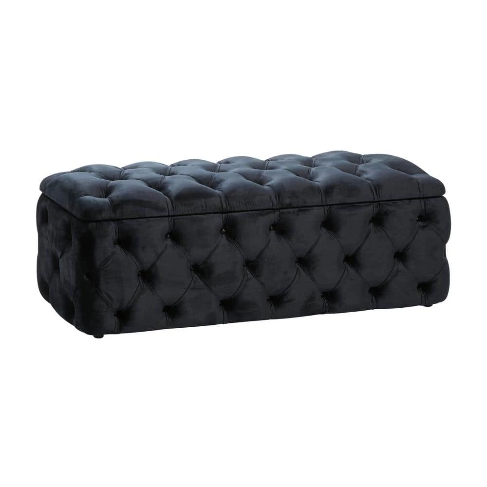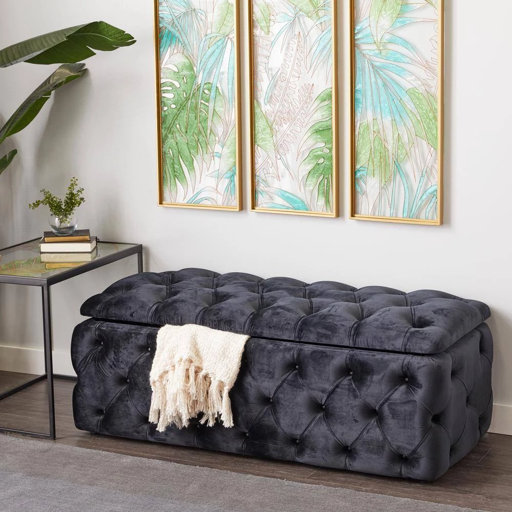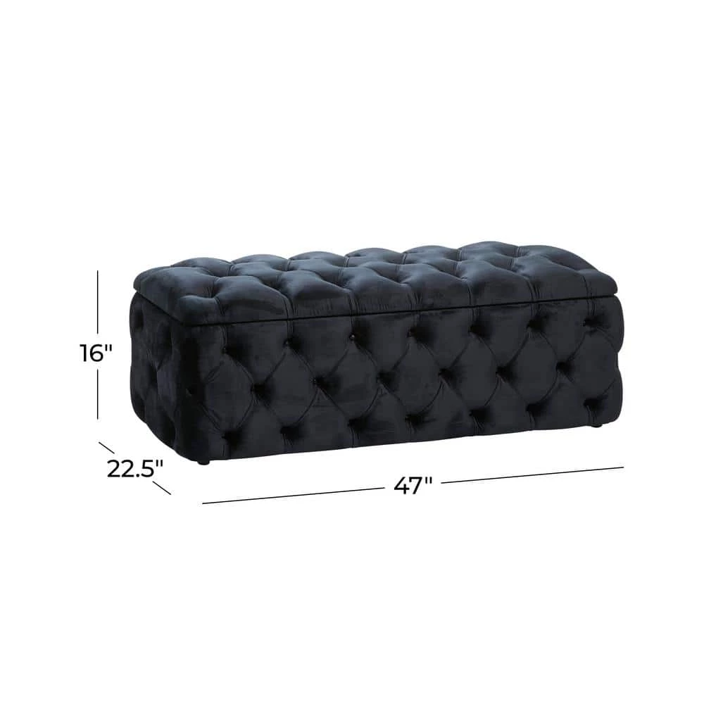 - This velvet storage bench measures 47″L x 22.50″W x 16″H and weighs 44 lbs