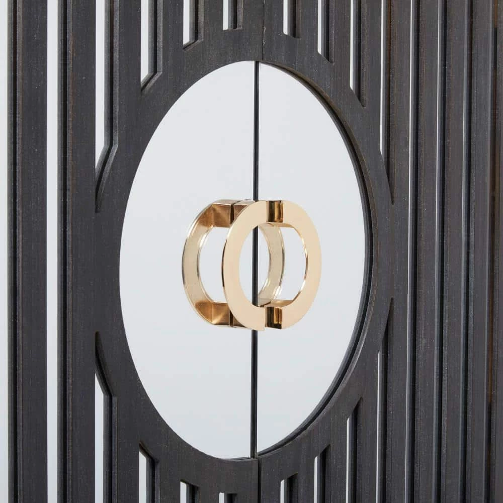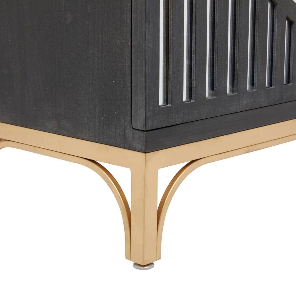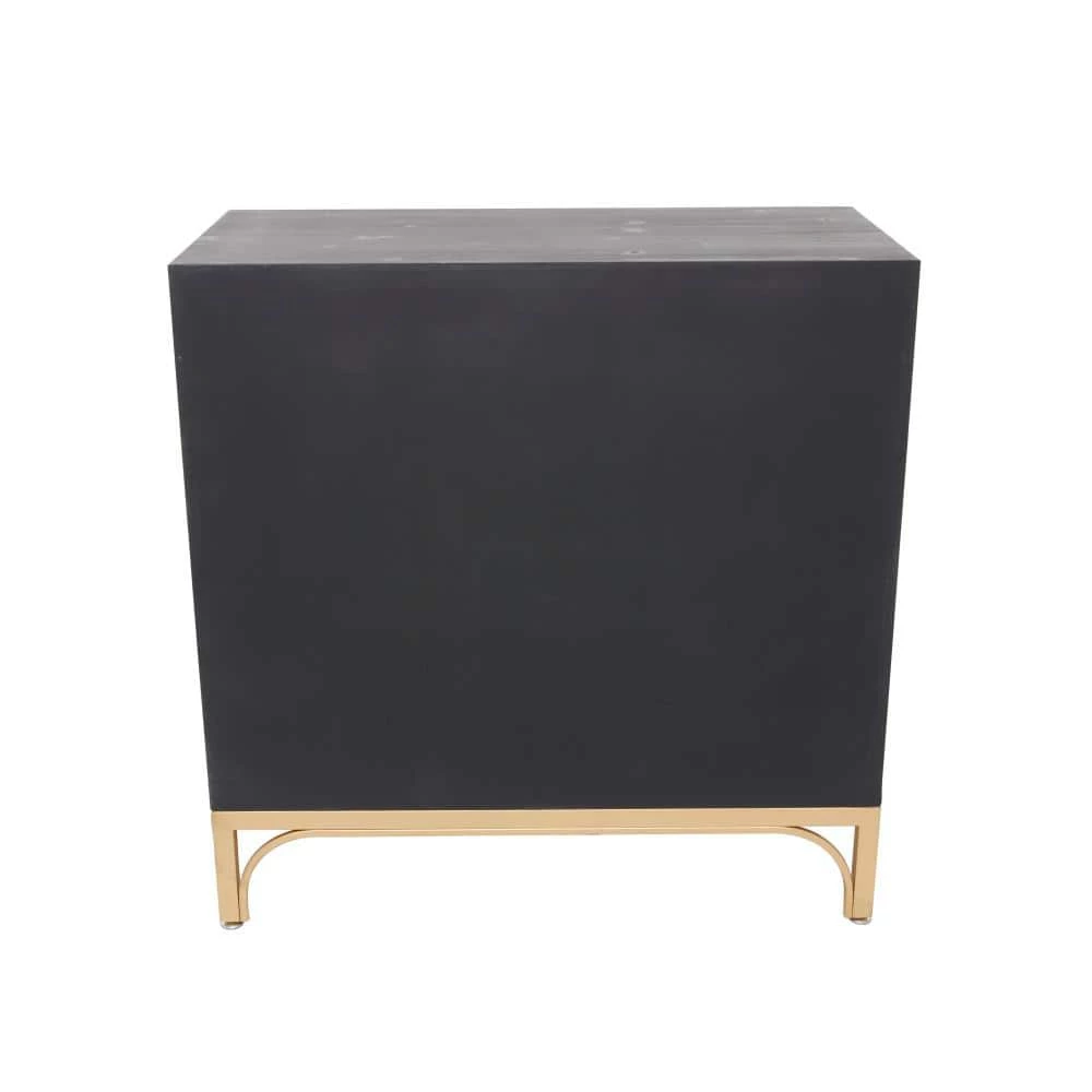 - Black two door accent cabinet highlights black and gold finishes that bring a sophisticated look