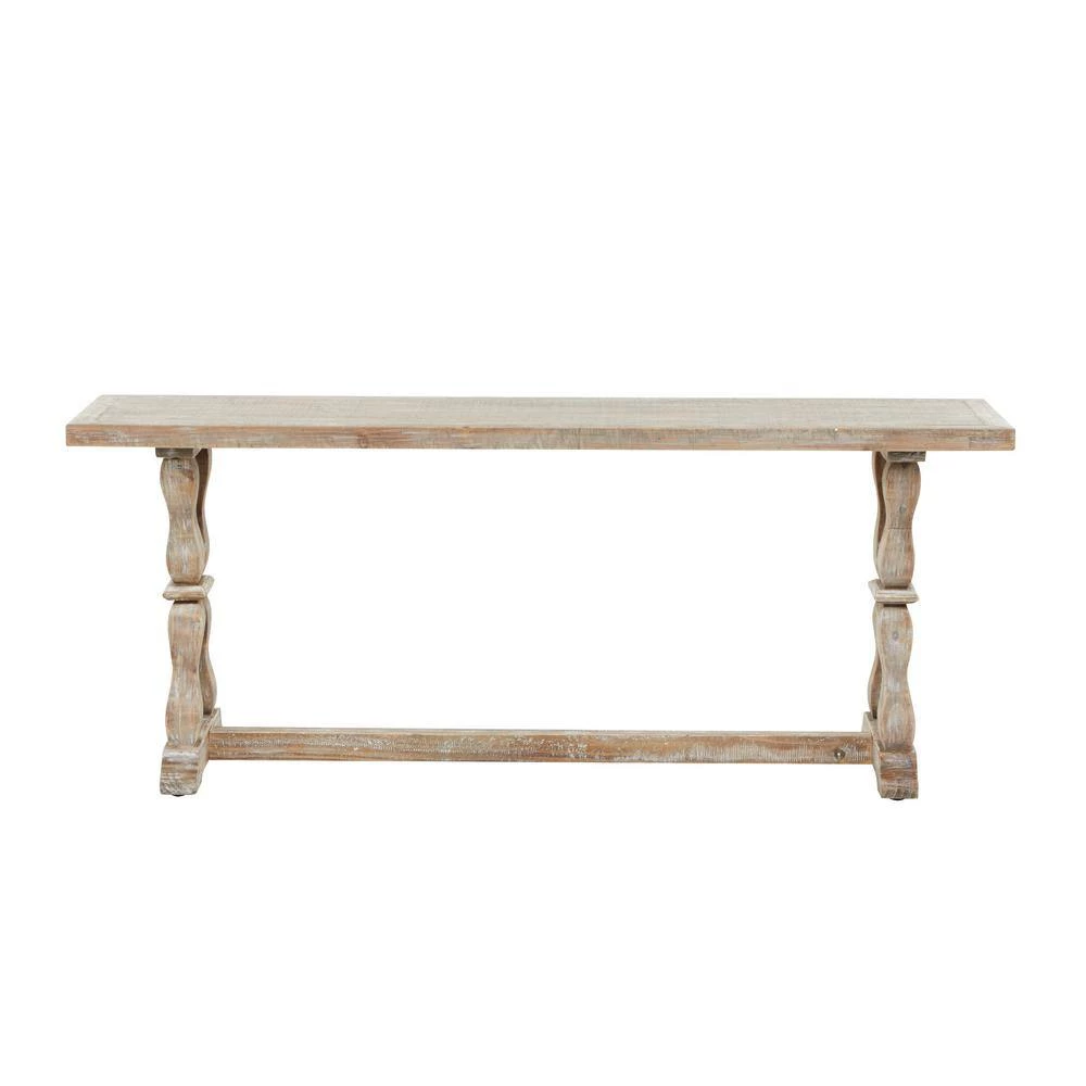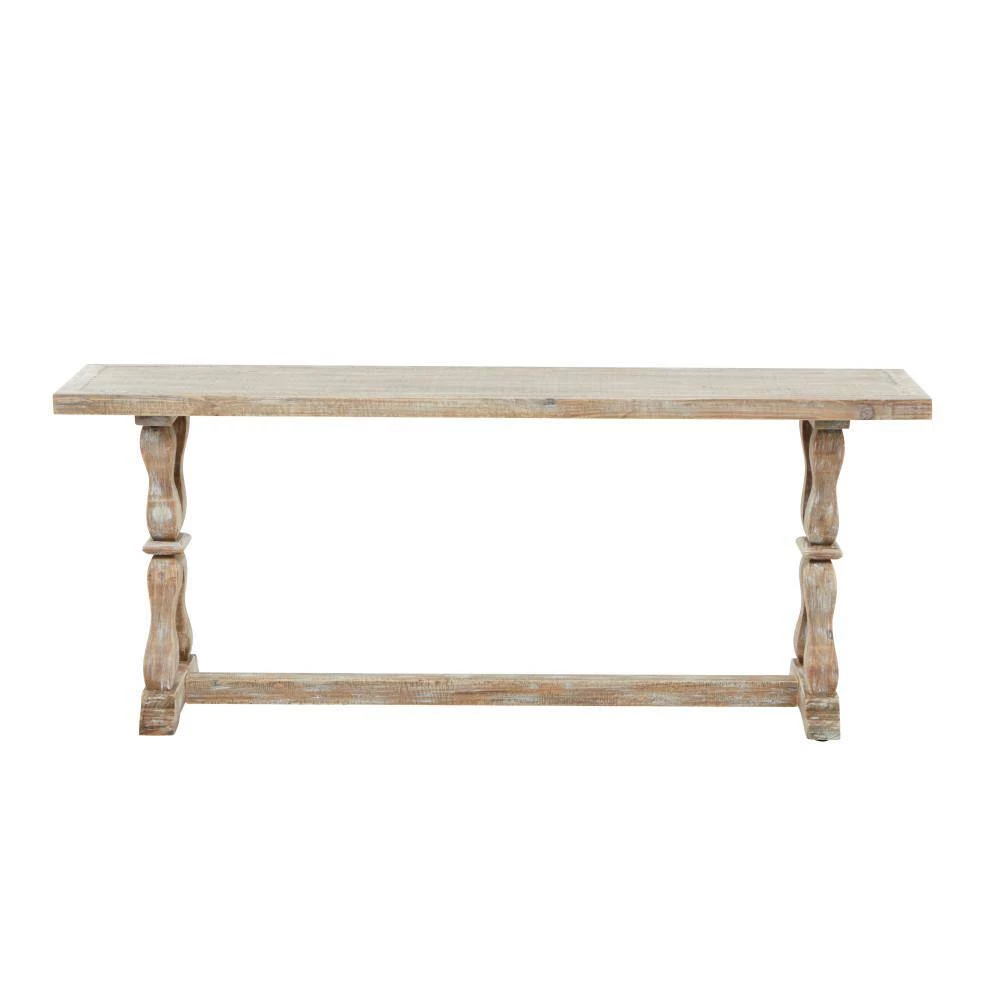 - Accent bench that highlights a natural wood brown overall finish with whitewashed details