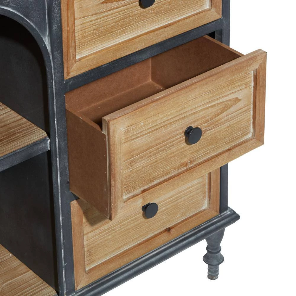 - This metal and wood cabinet has a rectangular shape with a solid pattern