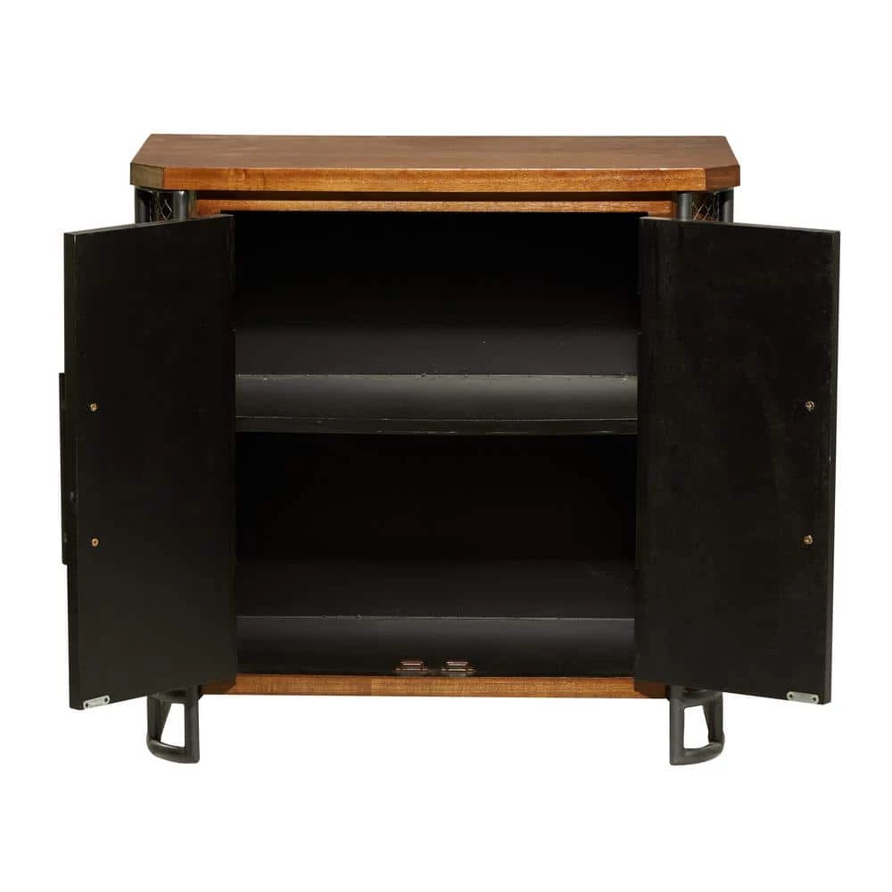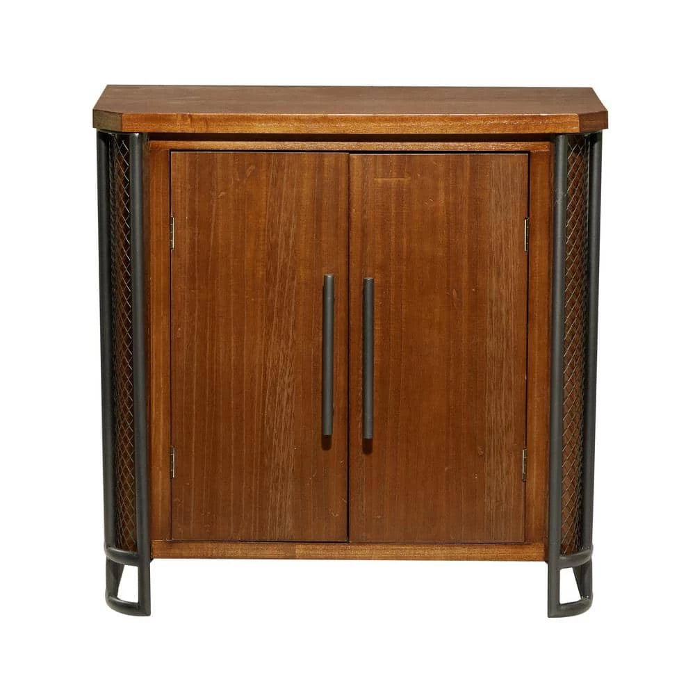 - Impress your guests with this 2-door decorative cabinet that flaunts a unique design and sturdy metal base