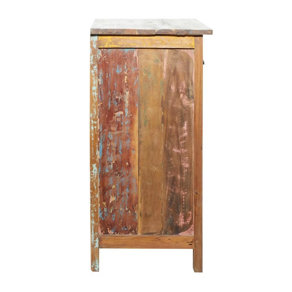 Add some extravagance in your traditional style inspired home by displaying this vintage wooden cabinet for a timeless vibe. Features a traditional style inspired design for a vintage taste. Rustic style designed for a warm and cozy interior. A storage piece that is spacious for your trinkets or decorative goods that can keep you organize and ideal for small space solution. Designed with protective cushions at the base that prevent scratching as well as sliding around. This accent furniture features interior space with 32.12”L x 14.25”W x 10.25”H measurements. This item comes shipped in 1 carton. This item features 3 wooden drawers with 6.75”L x 11.37”W x 3.62”H measurements and 20 lbs. weight capacity. Drawers are designed to be pulled out for use. Due to the handmade nature of this item, no two will be alike, there will be slight differences in shape, size, and color. Suitable for indoor use. Maximum weight limit is 100 lbs., each drawer can hold up to 20 lbs. Made in Indonesia. An accent furniture featuring shelves with 0.87″ and 0.37″ thickness. Rustic Design. This item comes with mounting hardware to prevent tipping.