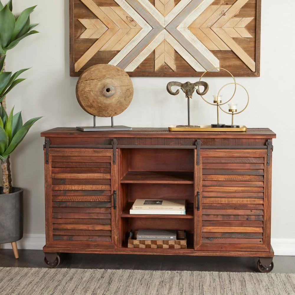 Bring a finishing touch to your home with an inviting appeal with this expertly crafted buffet sideboard. A stylish way to keep you organize and your belongings safe and protected. Organize and store your decor with this rustic-themed storage furniture as buffet cabinet in your dining room, entryway, or living room. Furnished with 17″L x 16″W x 15″H and 17″L x 16″W x 11″H interior cabinets. This item ships in 1 carton. Suitable for indoor use only. Holds up to 100 pounds. Featuring spacious shelves with 0.50″ thickness . Rustic design.