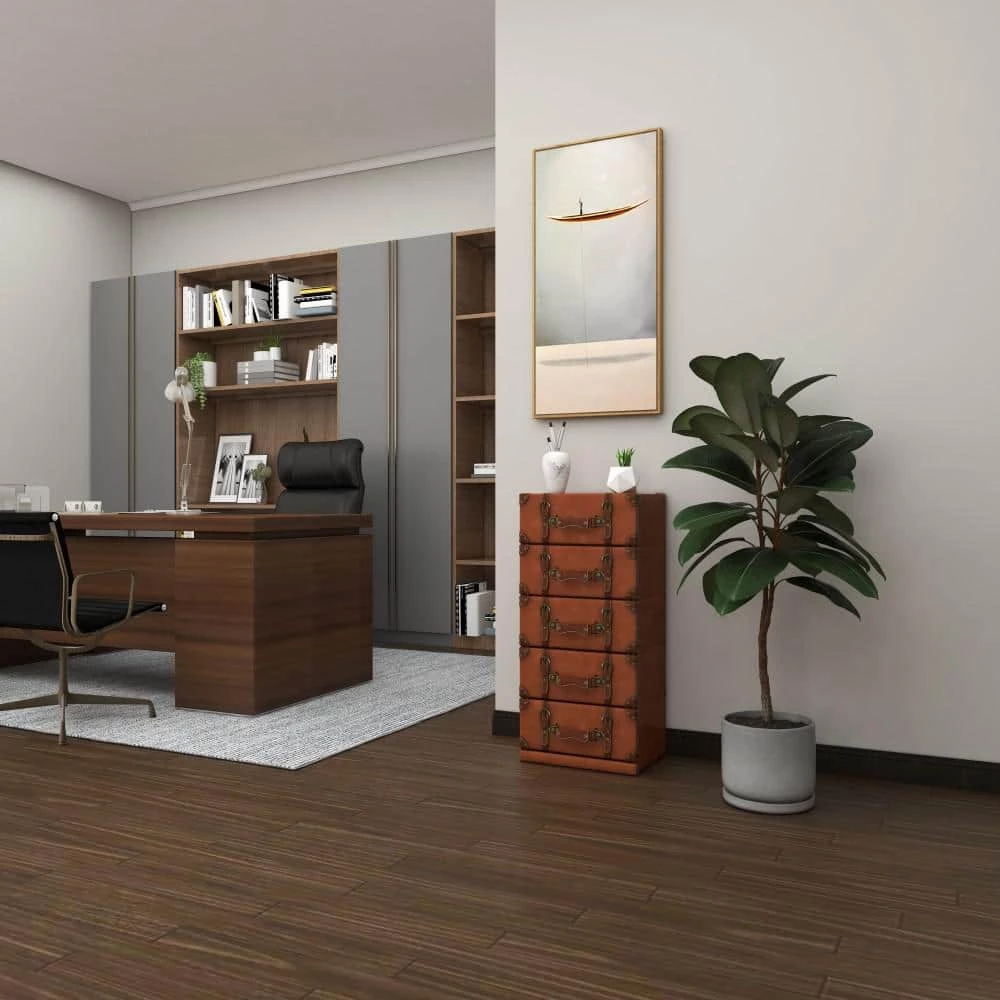 - A versatile drawer cabinet crafted with wood and PVC materials