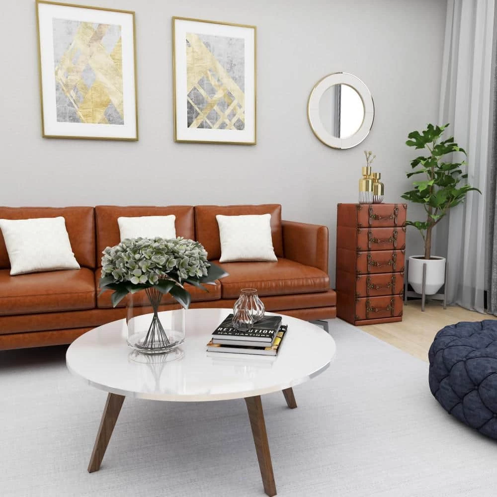 - A reddish brown PVC finish and brass stud accents highlight this storage chest