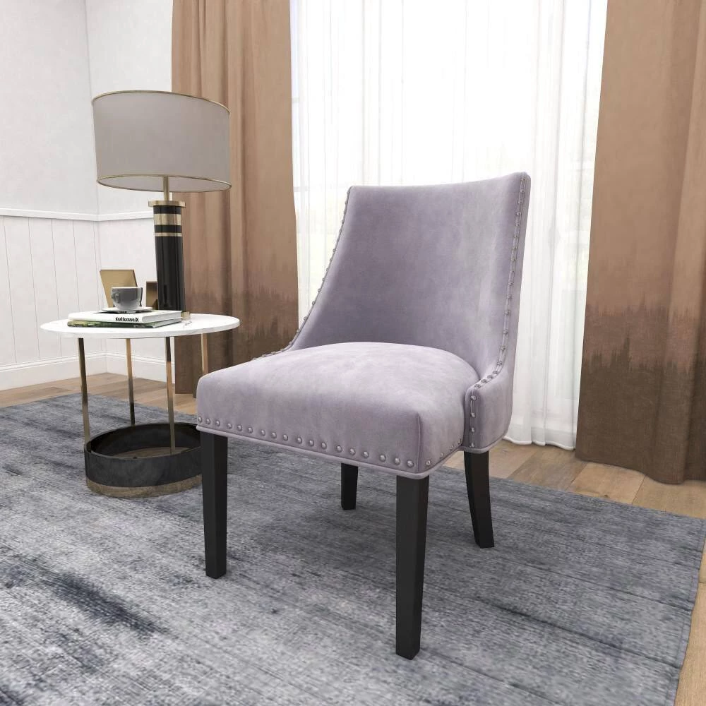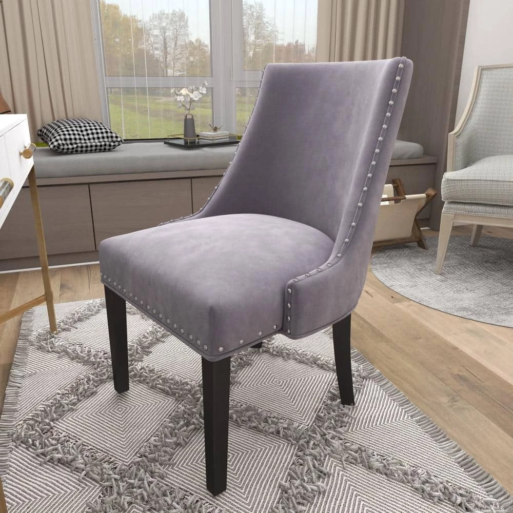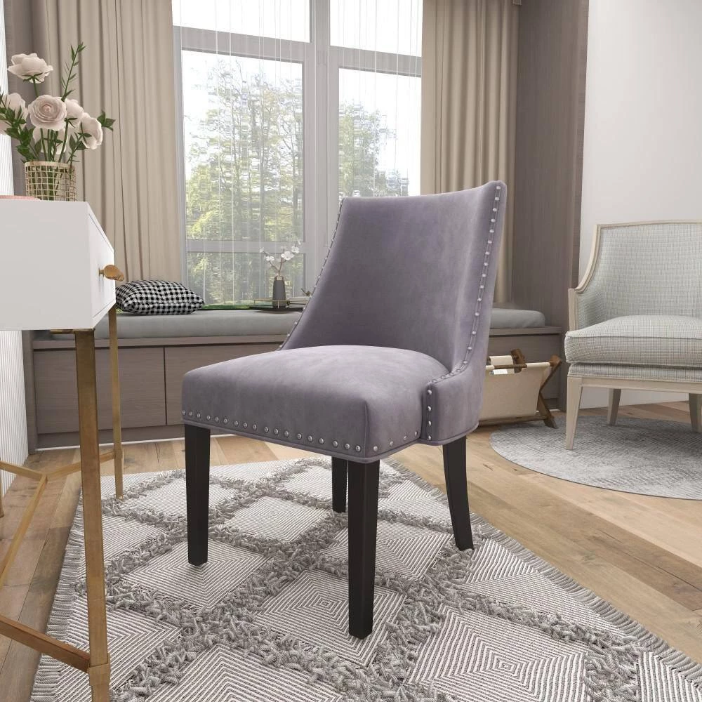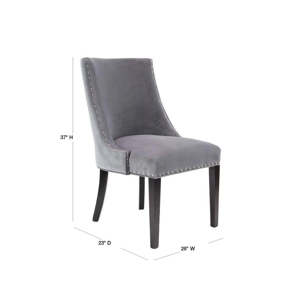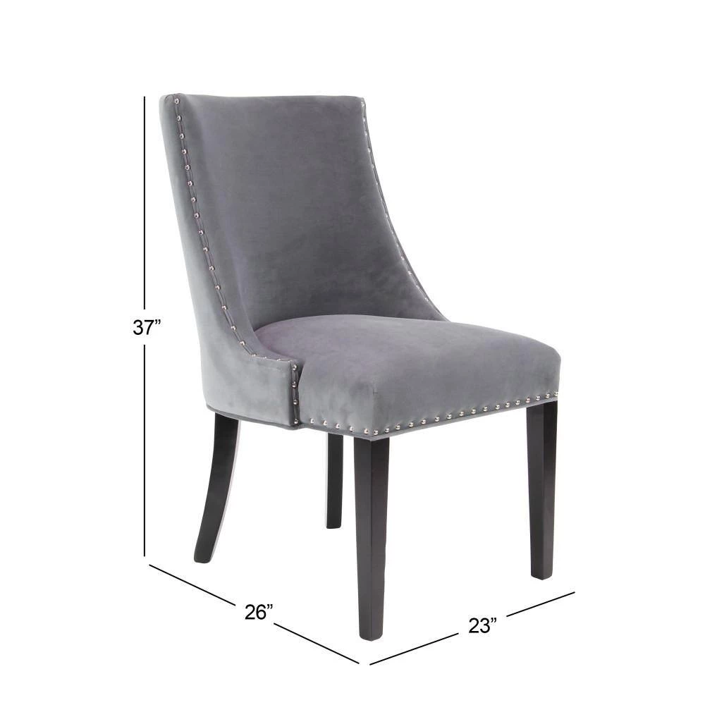 - Upholstered side chair features soft polyester fabric with high backrest and nail head accent along the side and a plush seat cushion