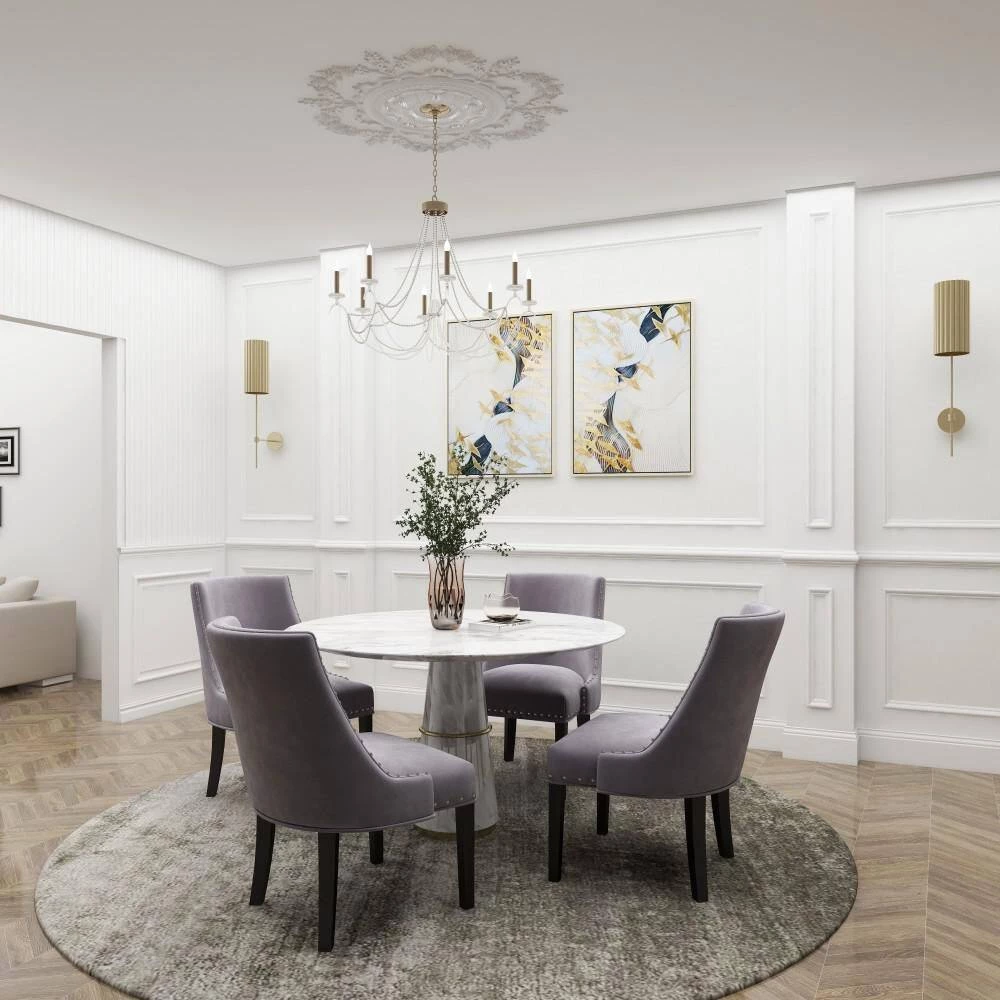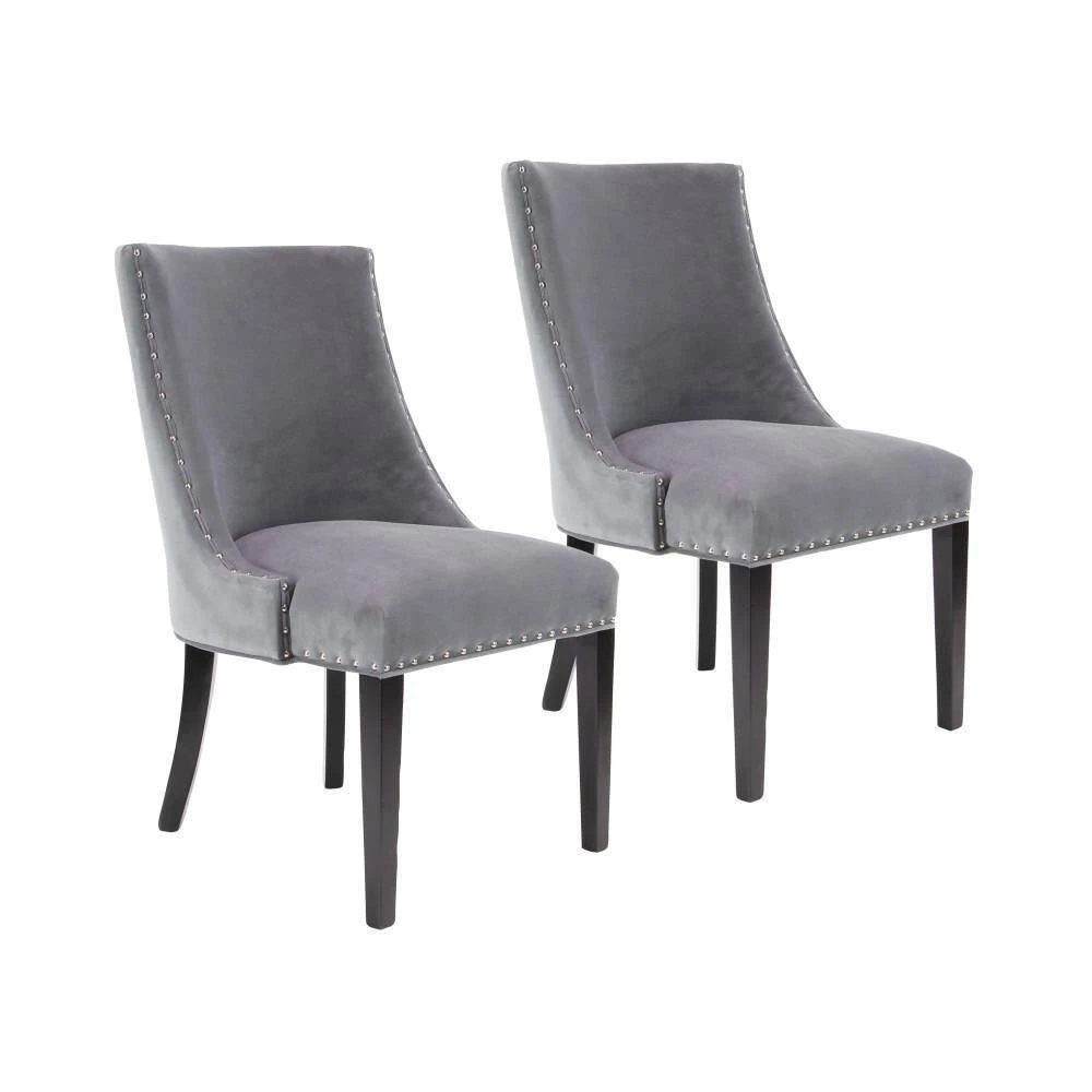 Take a seat at the table and create memories and laughter with your loved ones. Breakfast, lunch, dinner, and even game nights are always better when everyone is together around the dining table in these stylish chairs. Display this high back side chair with dark wood dining table or in your vanity room with mirror table for an elegant look. Designed with rubber stoppers at the base that prevent scratching furniture and table tops, as well as sliding around.. This item ships in 1 carton. This upholstered dining chair has a 3.5 seat cushion thickness. Wipe clean with a dry cloth. Suitable for indoor use only. Some assembly required. Maximum weight limit is 300 lbs. Each chair can accommodate 1 person. Dining chair set includes two chairs. Traditional style.