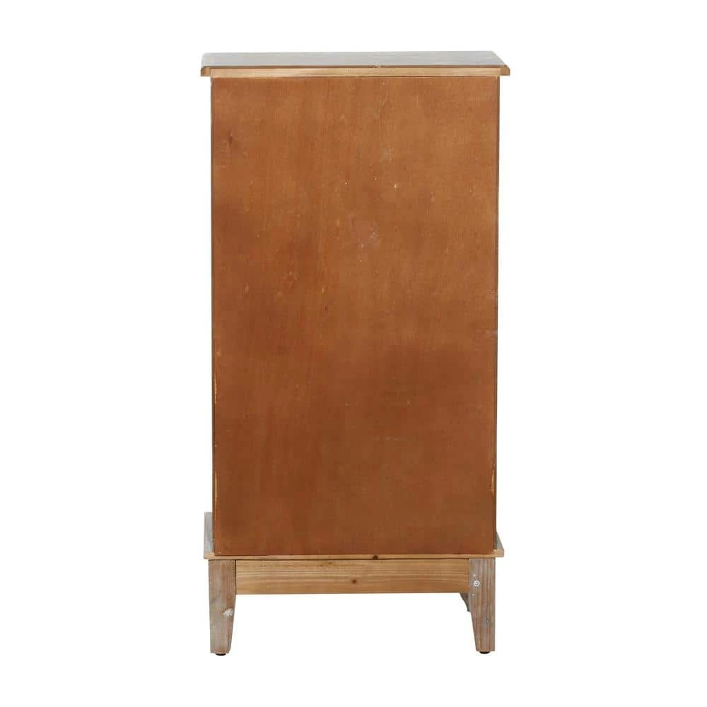Old wood look fits well with farmhouse, vintage, shabby chic, and French provincial interiors. A practical yet stylish upgrade that instantly elevate the look of your room. Maintain a clutter free zone and stay organize with this chic cabinet. Designed with rubber stoppers at the base that prevent scratching furniture and table tops, as well as sliding around. Suitable for indoor use only. Item has maximum weight limit of 75 lbs. Vintage theme. This item comes with mounting hardware to prevent tipping.