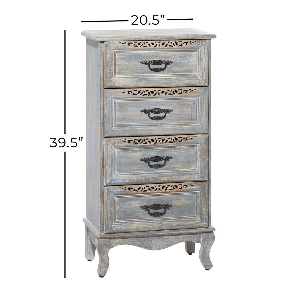 - This wooden cabinet with drawer features a rectangular storage drawer design with a distressed blue gray paint exterior