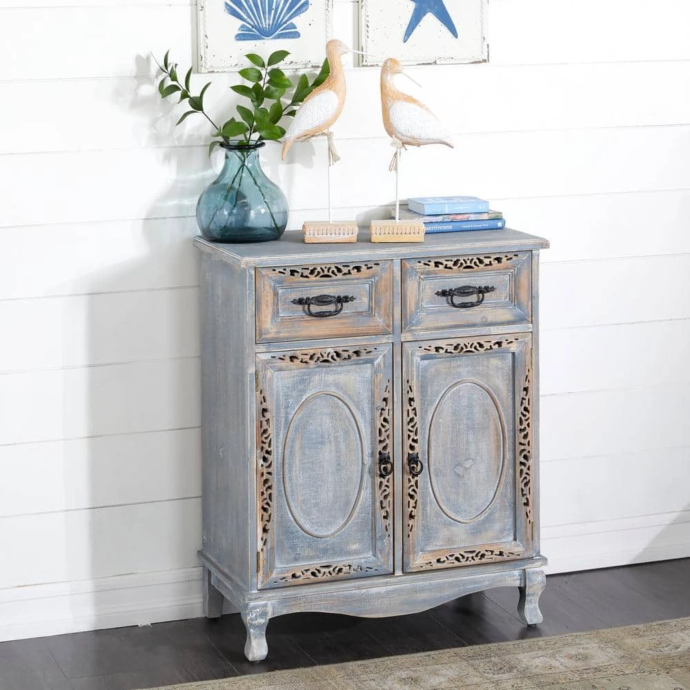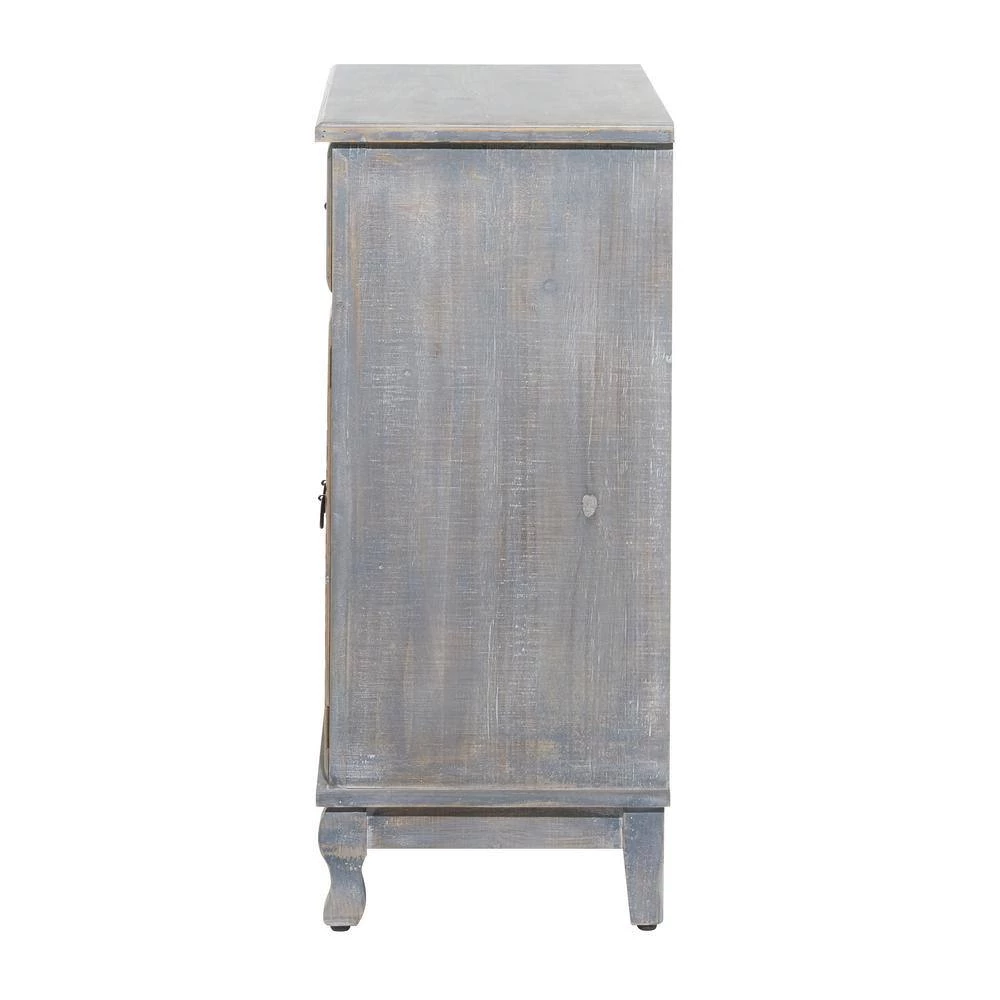 Bring a hint of whimsy when organizing your home space with this ash grey vintage storage cabinet. A practical yet stylish upgrade that instantly elevate the look of your room. Maintain a clutter free zone and stay organize with this chic cabinet. Suitable for indoor use only. Maximum weight limit is 100 lbs. Vintage theme. This item has 1 shelf. This item comes with mounting hardware to prevent tipping.