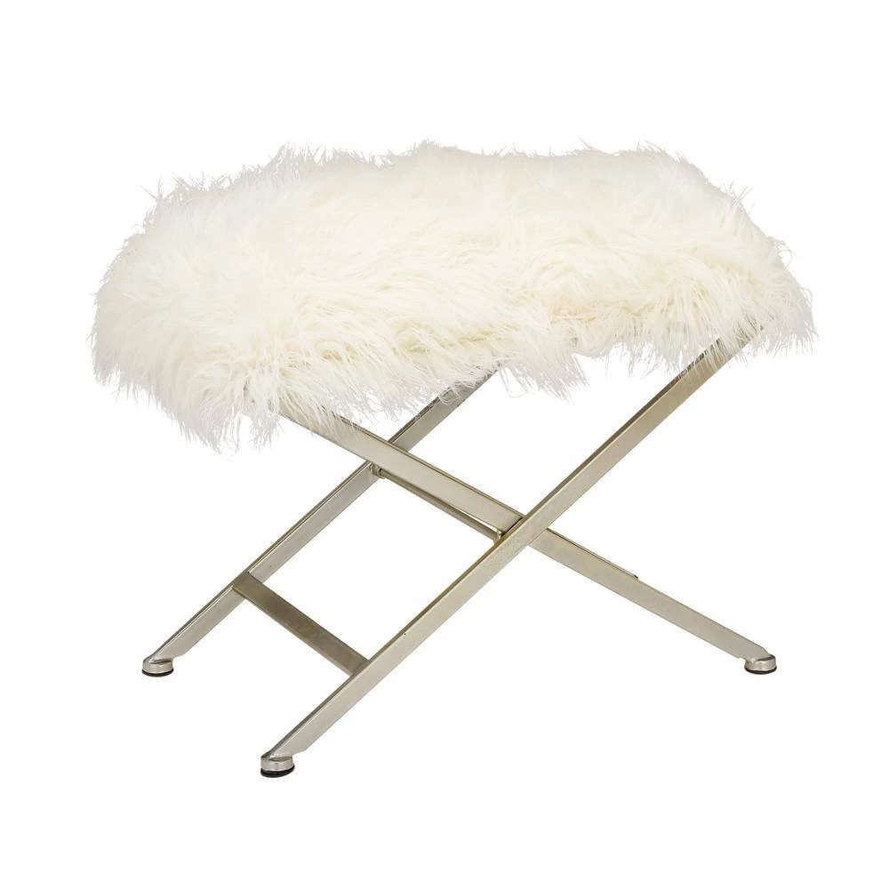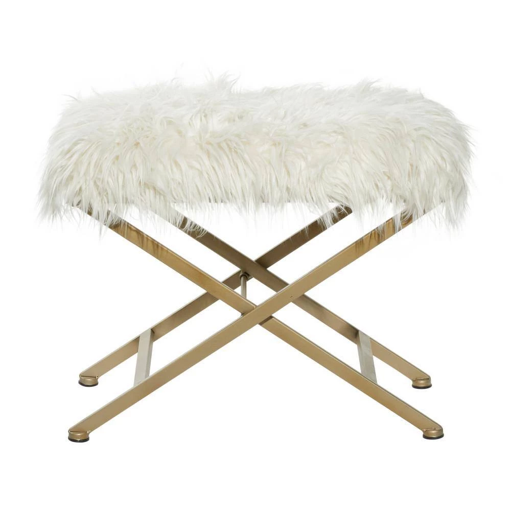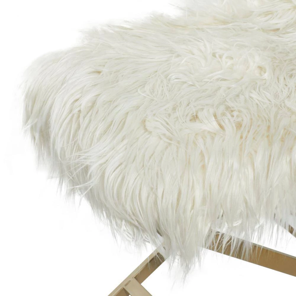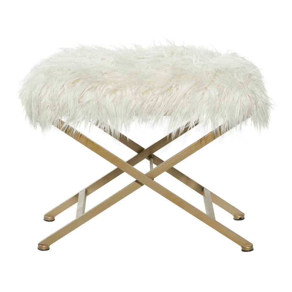 - Upholstered accent stool is designed with an elegant white faux fur seat on an X-shaped frame base for a solid support
