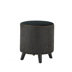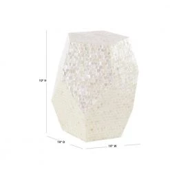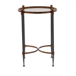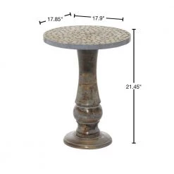 18 in. Gray Round Wood Handmade Distressed End Table with Wood Chip Inspired Tabletop by Litton Lane