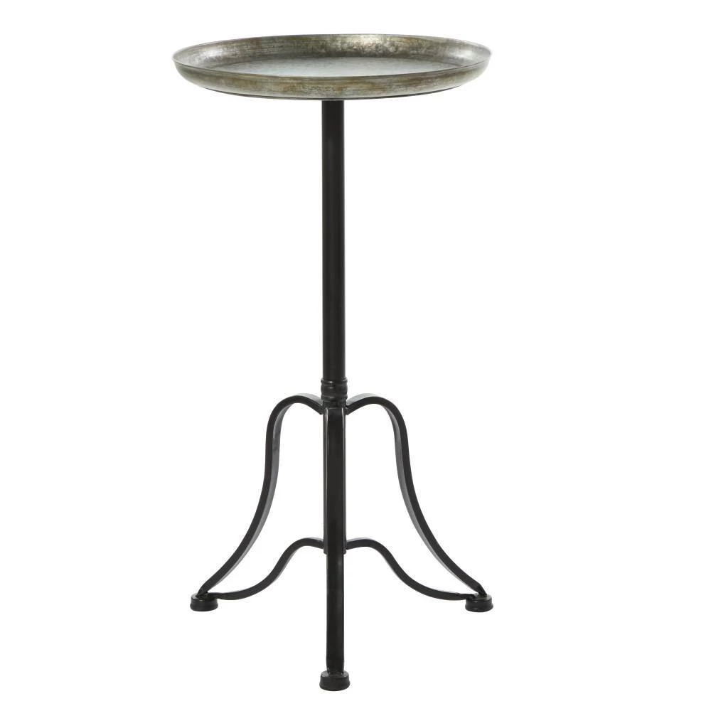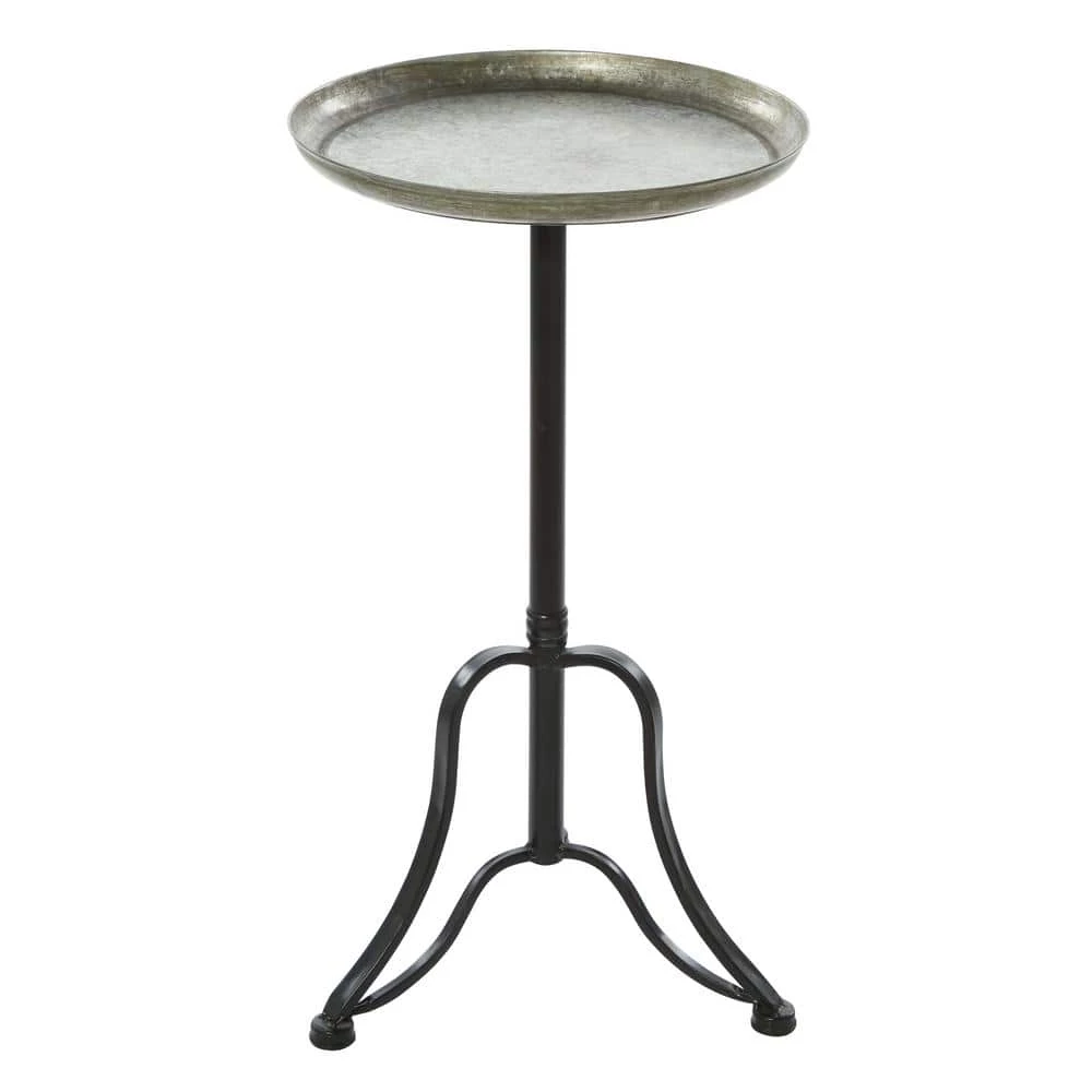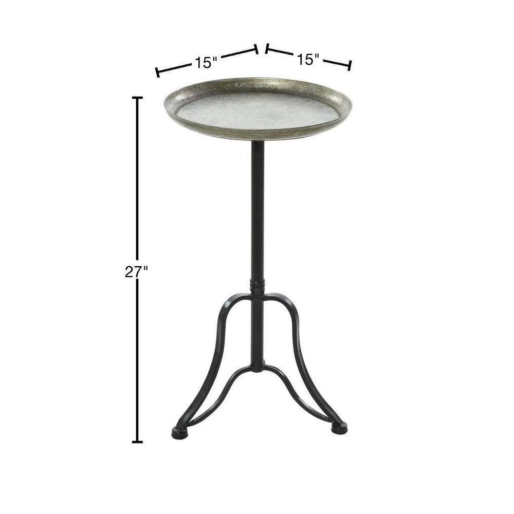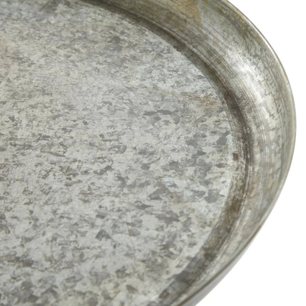- Farmhouse style inspired silver iron tray side table comes with a round metal surface with raised edges that allows for sturdy display