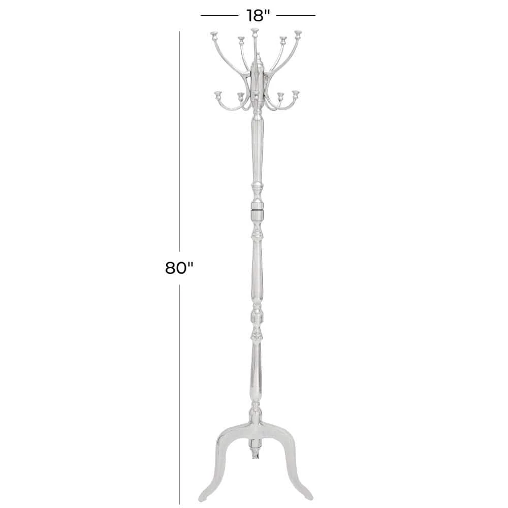 - Coat rack flaunts a slim ornate pillar design with a tripod stand