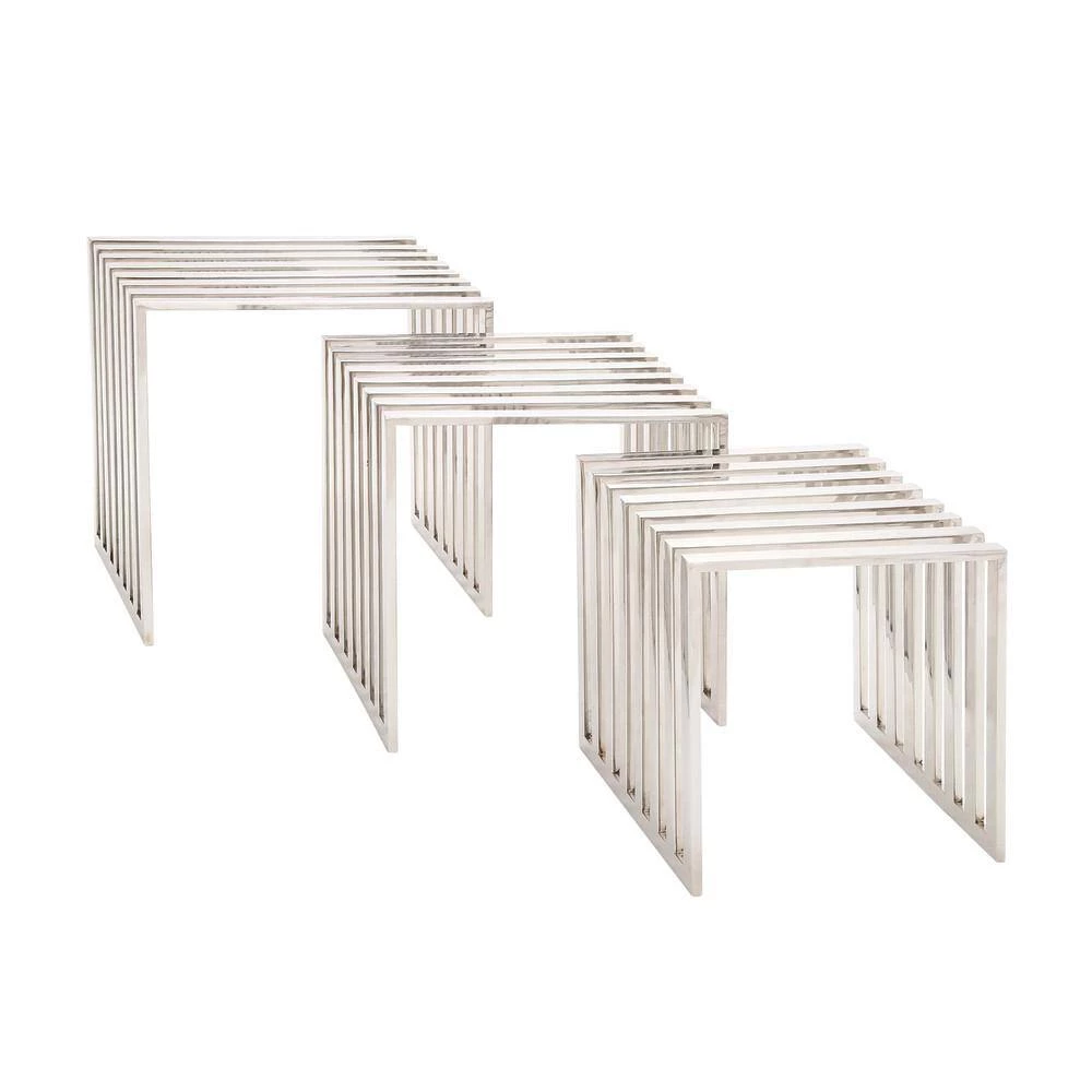 - This rectangle accent table set features a cage-style construction made of a solid stainless steel in a nesting design for easy storage