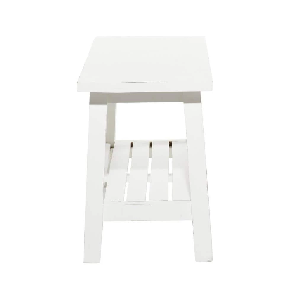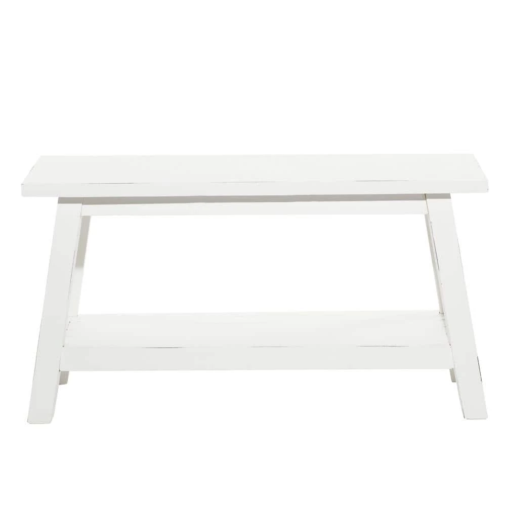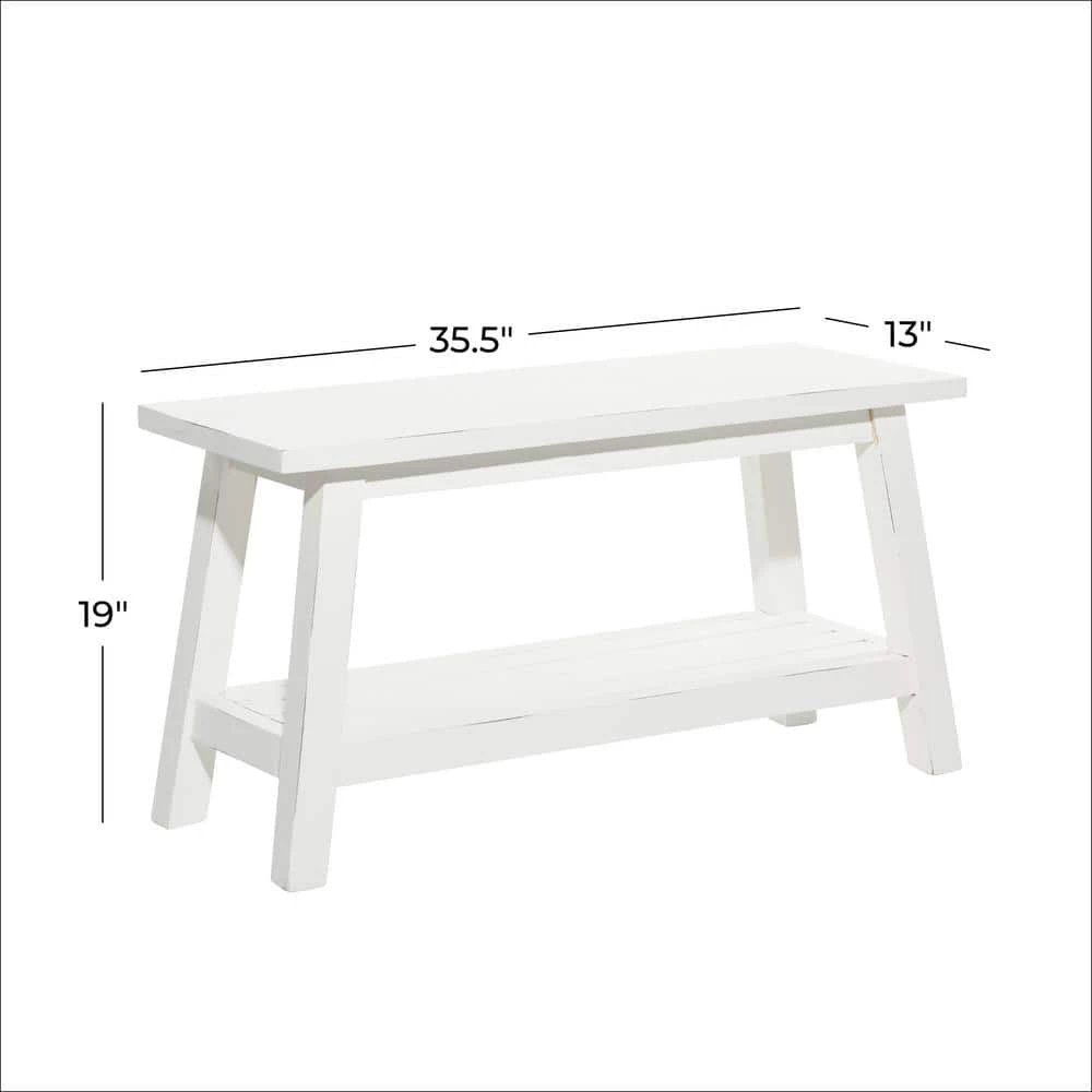 So take a load off and relax on this decorative bench. A small piece of furniture that make a big difference to give your home an instance refresh. This vintage piece will be a great addition to your chic farmhouse style home with dark solid-colored backgrounds.. This item ships in 1 carton. This wooden bench features a seat with 1.12″ cushion thickness. Wipe clean with a dry cloth. Suitable for indoor use only. Maximum weight limit is 250 lbs.. Made in Indonesia. Farmhouse-themed style.