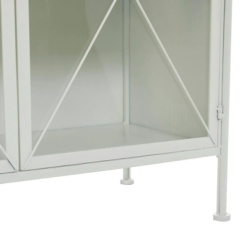 - The iron material of this accent cabinet is welded to form a sophisticated rectangular form with hinged glass doors to ensure more convenient use