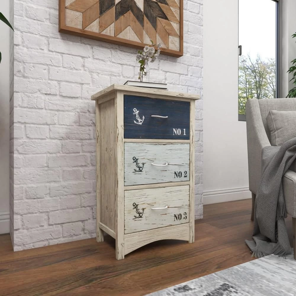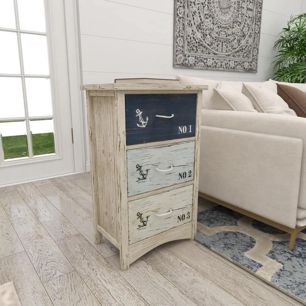 Beautifully crafted with durable structure and design for a long lasting enjoyment to keep your space free of clutter. A spacious piece of furniture that can instantly transform the look of any room in your home. Add this storage chest to any corner of your home space for an instant upgrade on your coastal-themed aesthetics. This item ships in 1 carton. Built with 3 drawers each measuring 13″L x 10″W x 7″H. Suitable for indoor use only. Maximum weight limit is 50 lbs., each drawer can hold up to 15 lbs. Coastal style. Showcases stencil typographies in “NO. 1”, “NO. 2”, and “NO.3” on each drawer.